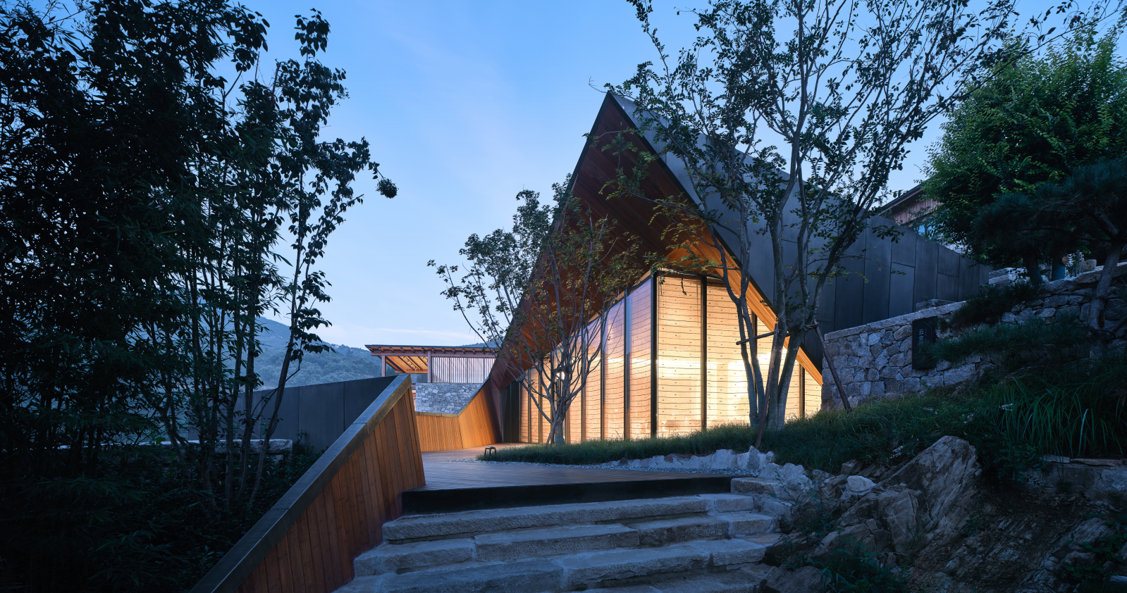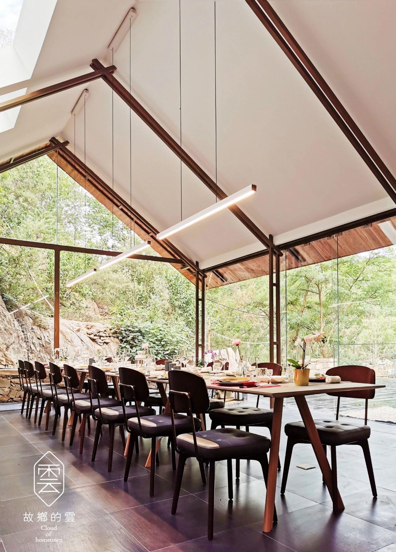 故鄉(xiāng)的云作為高端野奢度假酒店,用最輕盈的觸摸,傳遞最有意義的體驗,與環(huán)境山林掩映,與山野自然相融,最大程度賦予居住空間自然融合的詩意美學。