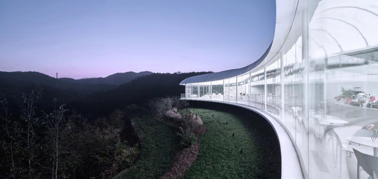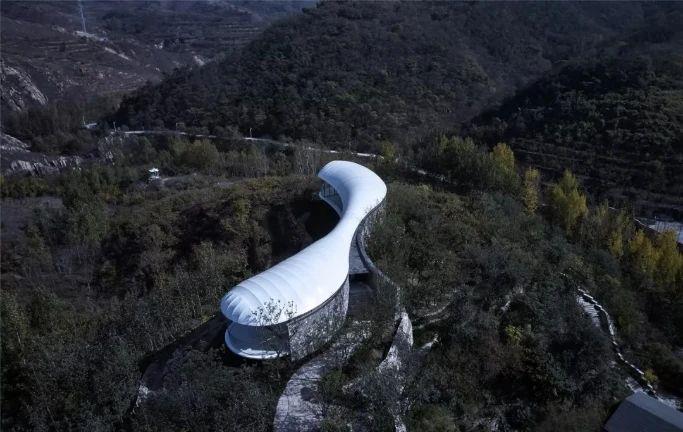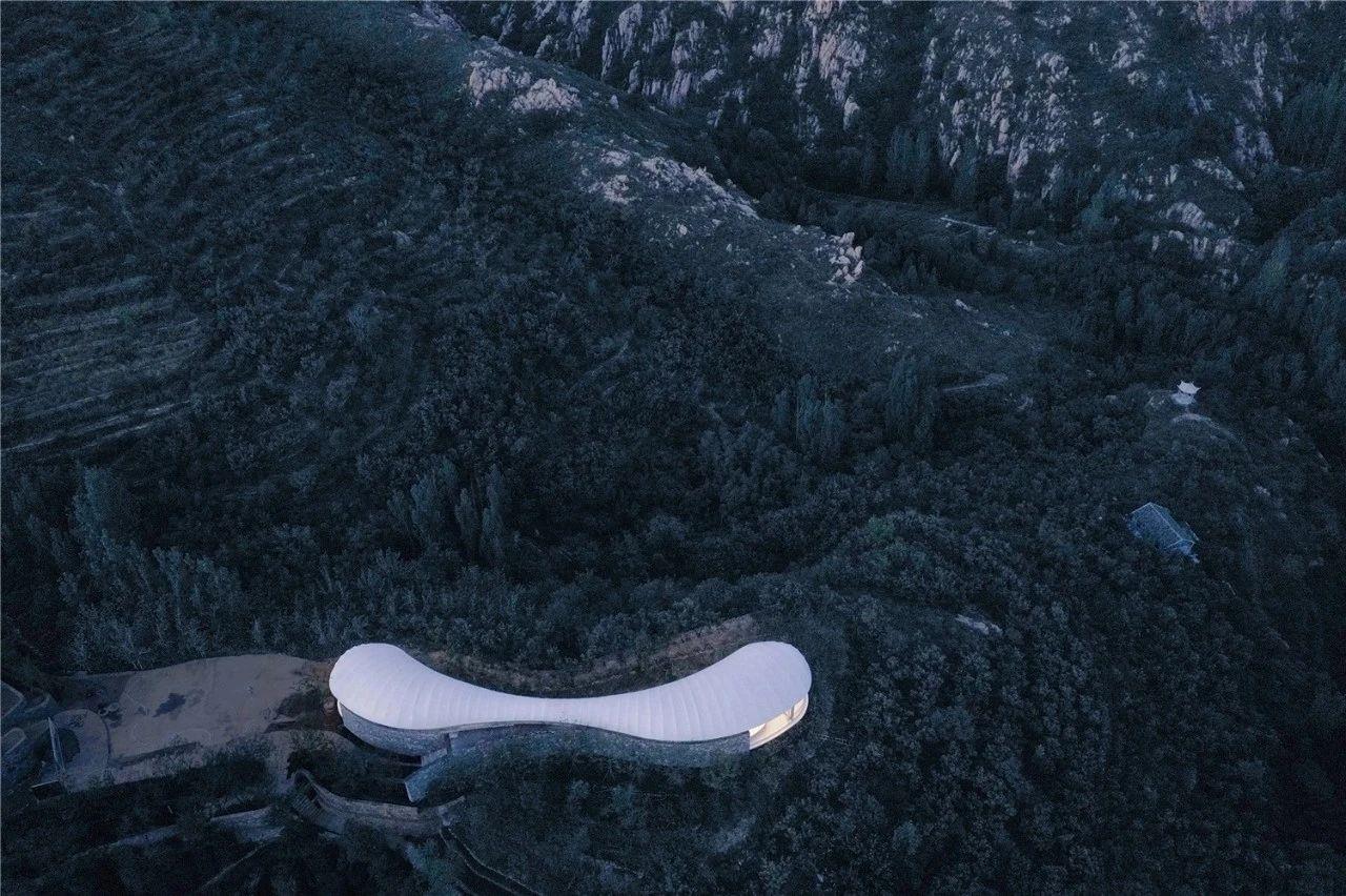 九女峰書房位于區(qū)域的至高處,有“登高望遠”之意。獨特的建筑動線與起伏岑寂的山脈、潺潺的泉水相呼應,像一朵云彩延綿無盡,有一種靜止的流暢。建筑選取的特殊構造的超輕材質,經(jīng)得起狂風驟雨驕陽冰霜的考驗同時又超輕環(huán)保。書房內部選用白色為主色調,打造出一個思維豐盈的閱讀空間,與周圍環(huán)境及整體泰安大背景形成強烈的沖擊對比,為了看見而留白,簡約中體會日益豐富。創(chuàng)造一個屋檐下的共享達悟生活的文化之所,在這里,時間不存在,空間在縮小,但你的思緒可以放得無限遼闊。