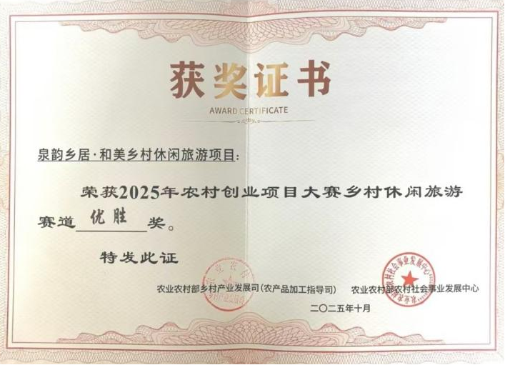 近日,2025年農(nóng)村創(chuàng)業(yè)項(xiàng)目大賽全國(guó)總決賽在湖南長(zhǎng)沙順利舉行,山東文旅山鄉(xiāng)集團(tuán)打造的“泉韻鄉(xiāng)居·和美鄉(xiāng)村休閑旅游項(xiàng)目”——濟(jì)南天上的街市鄉(xiāng)村旅游度假區(qū)作為大賽鄉(xiāng)村休閑旅游賽道山東省唯一參賽代表,榮獲“優(yōu)勝獎(jiǎng)”。