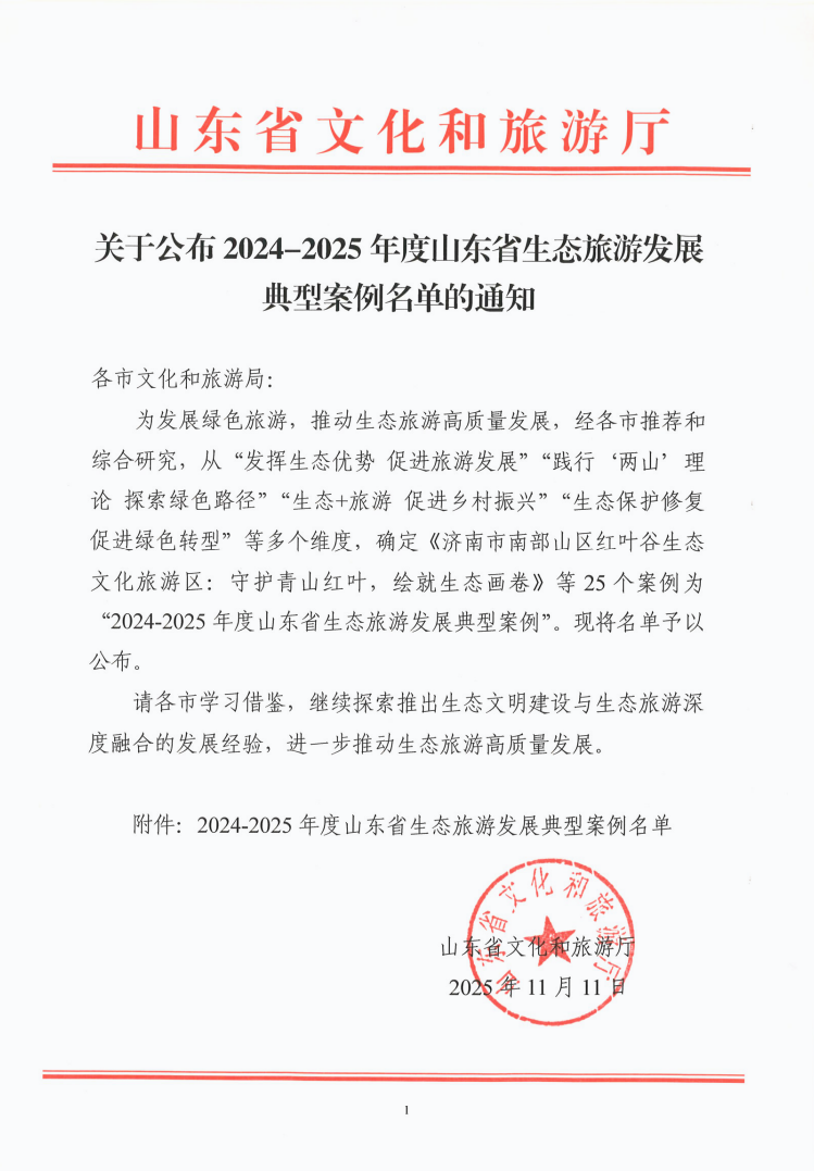 近日,“生態(tài)山東 綠色休閑”2025山東生態(tài)旅游推進活動在濟南市萊蕪區(qū)成功舉辦。在活動現(xiàn)場,省文化和旅游廳公布了2024-2025年度山東省生態(tài)旅游發(fā)展典型案例名單。山東文旅山鄉(xiāng)集團濟南天上的街市鄉(xiāng)村旅游度假區(qū)成功入選。
