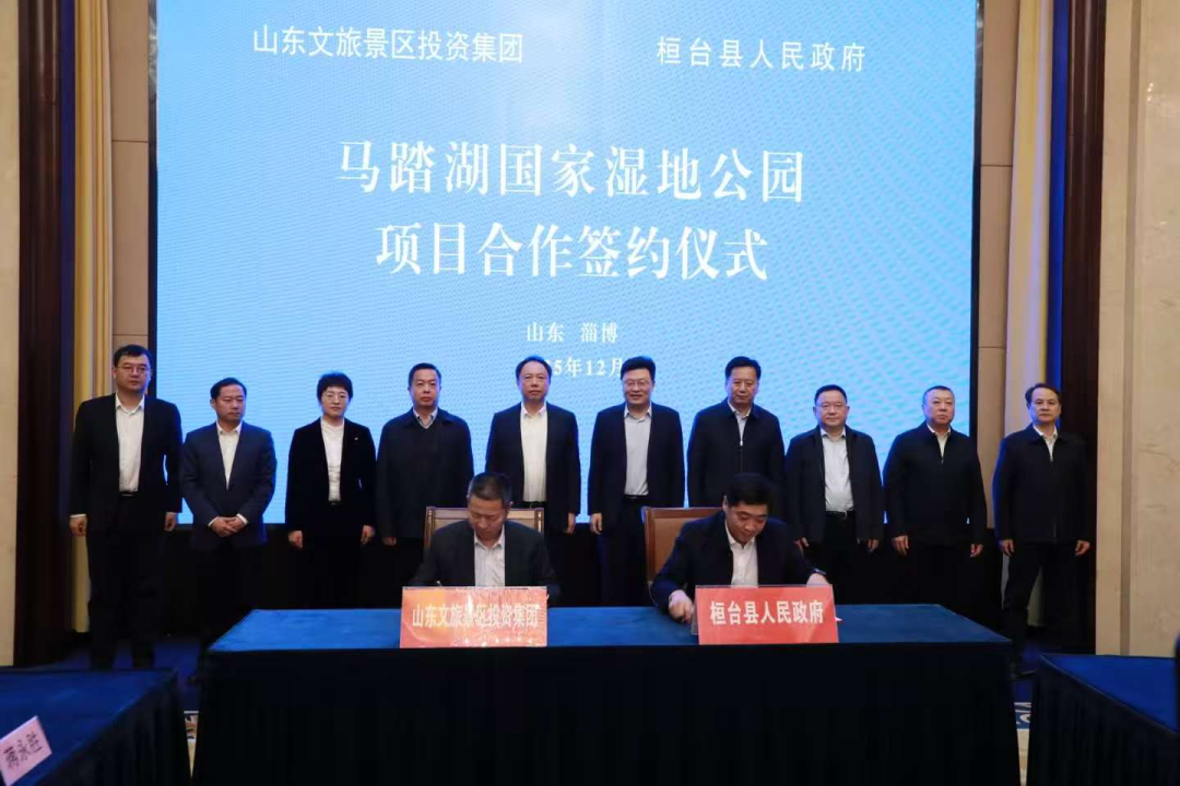 12月19日,山東文旅景區(qū)集團與桓臺縣人民政府在淄博市齊盛賓館舉行馬踏湖國家濕地公園項目合作簽約儀式。淄博市委副書記、市長趙慶文,市政府黨組成員、副市長郭慶,市政府秘書長宗志堅,桓臺縣委書記范偉,縣委副書記、縣長王洪波,山東文旅集團黨委書記、董事長丁藝,黨委委員、副總經(jīng)理喬衛(wèi)東出席簽約儀式。